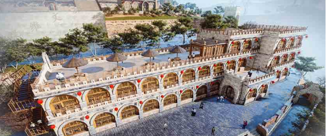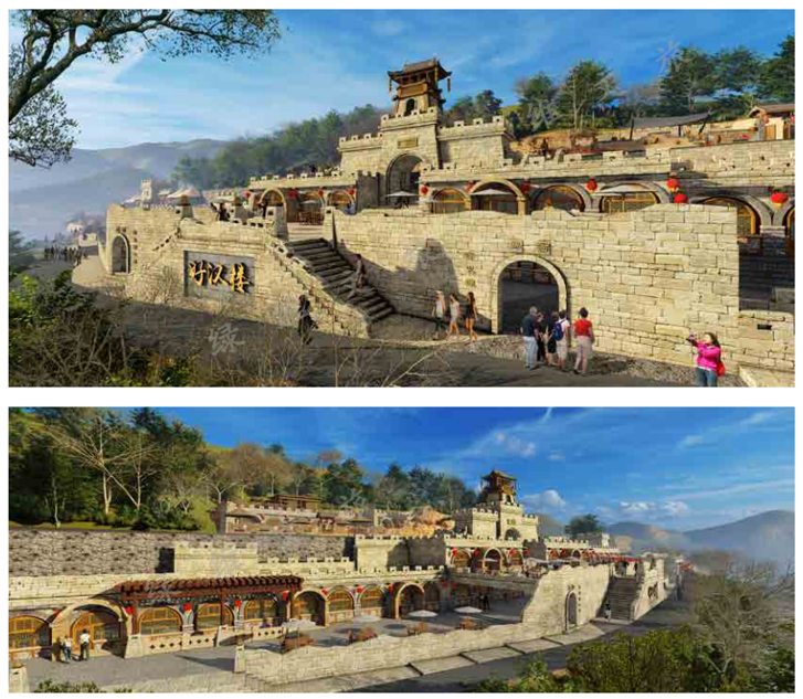 以“蒙汉互市”文化背景为依托,以长城元素为设计基底,结合长城城墙、当地窑洞建筑风格,在现有窑洞的基础上进行改造和新建,力求打造主题鲜明、产品丰富、业态完善的商业街区。