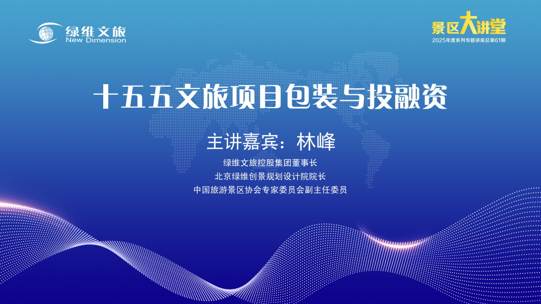 在文旅产业蓬勃发展的当下,文旅项目的包装与投融资成为关键议题。本次讲课绿维文旅董事长林峰博士围绕文旅项目包装与投融资展开,结合时代发展趋势,从格局、市场、结构、供给等方面深入剖析,为文旅产业发展提供思路。